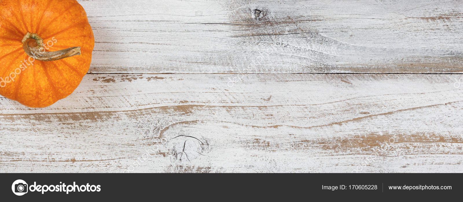 Autumn Pumpkin On Rustic White Wood Background Stock Photo