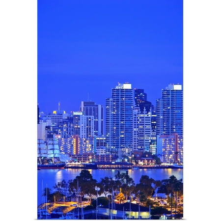 Amazon Com San Diego Skyline At Night Glossy Poster Picture Photo