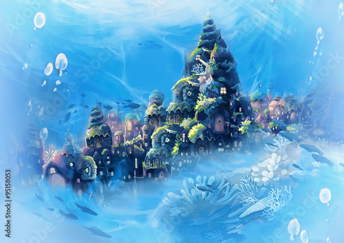 Illustration Sea City Realistic Cartoon Style Fantastic Sci Fi