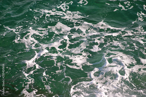 Turquoise Green Seawater With Sea Foam As Background Close Up