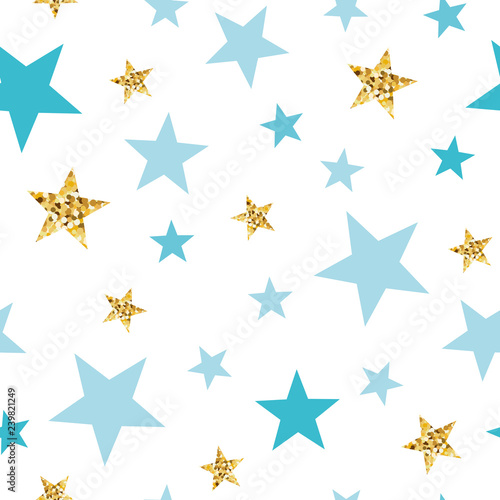 Doodle Star Seamless Pattern Background Blue Gold Stars Abstract