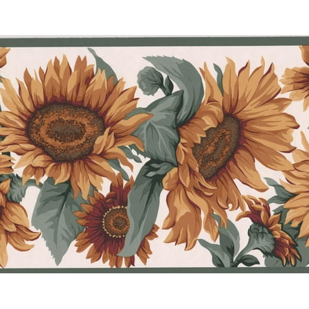 Prepasted Wallpaper Border Orange Yellow Sunflowers Emerald