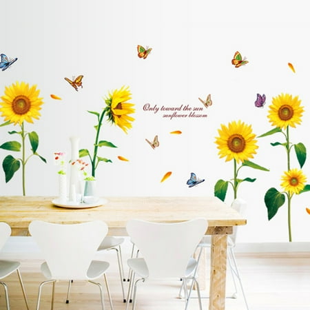 Removable Sunflower Background Wall Stickers Poster Plant Paster