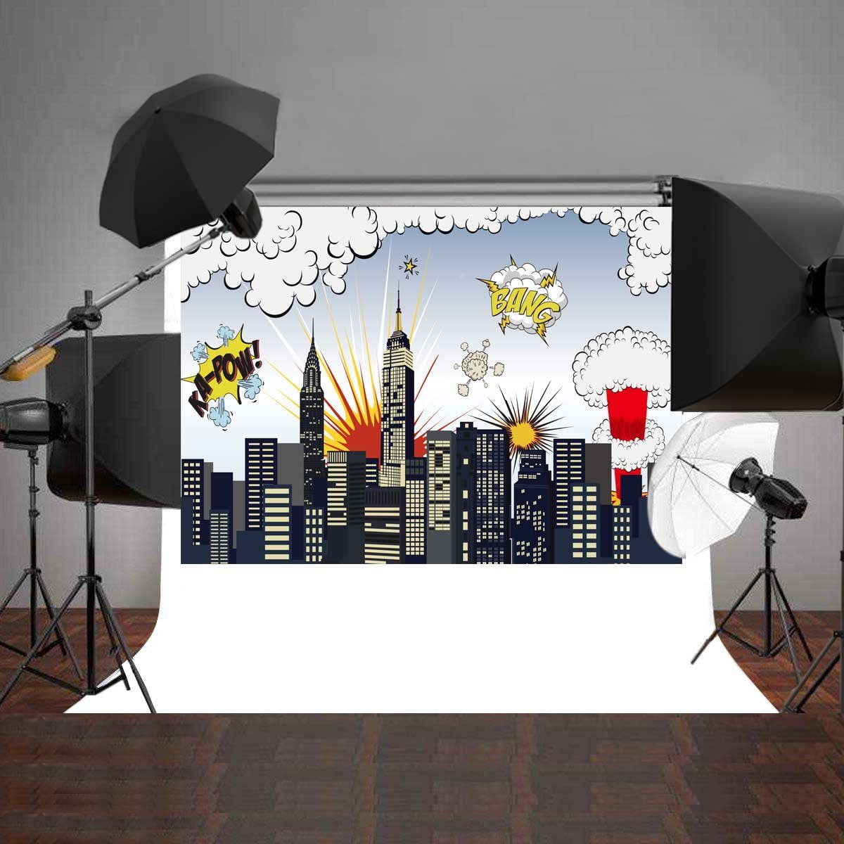 5x7ft 9x6ft Vinyl Superhero City Fight Boom Photography Backdrop
