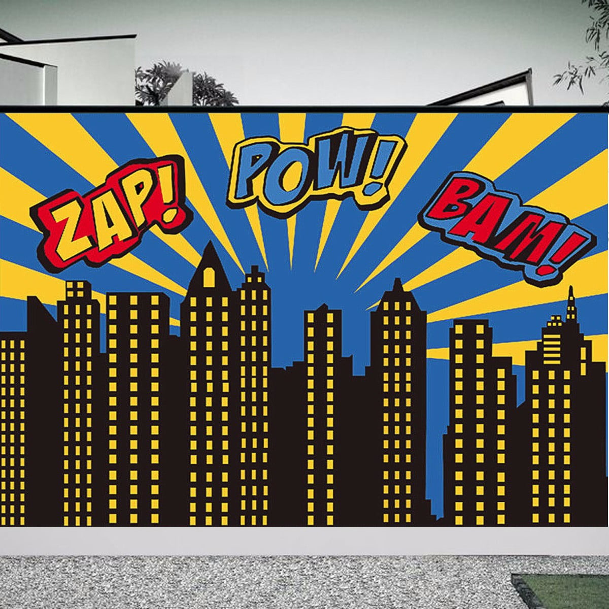 Superhero City Theme Photography Backdrop Cartoon Blast Children