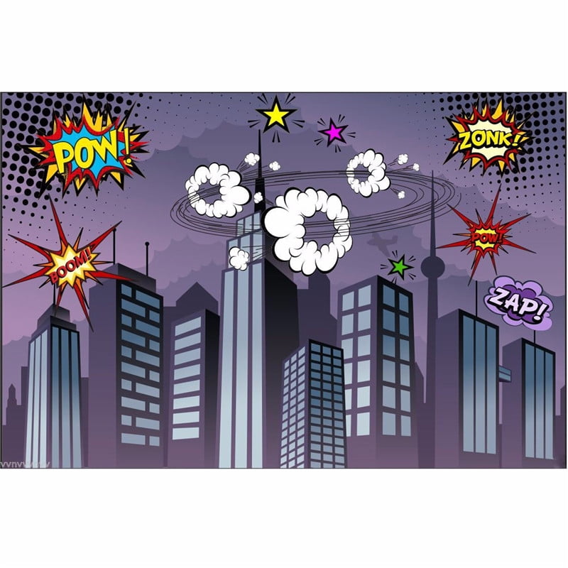 Photography Backdrop Superhero Cartoon City Boom Poof Background