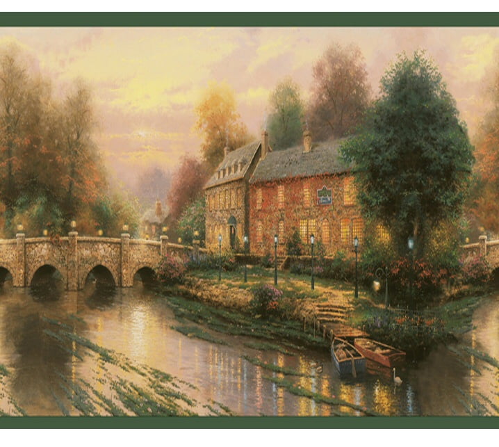 Thomas Kinkade Lamplight Inn Bridge Wallpaper Border 30882210