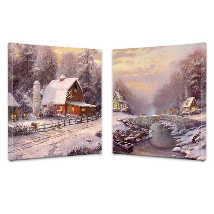 Thomas Kinkade Winter On Riverbend Farm Set Of Two 20 X 20