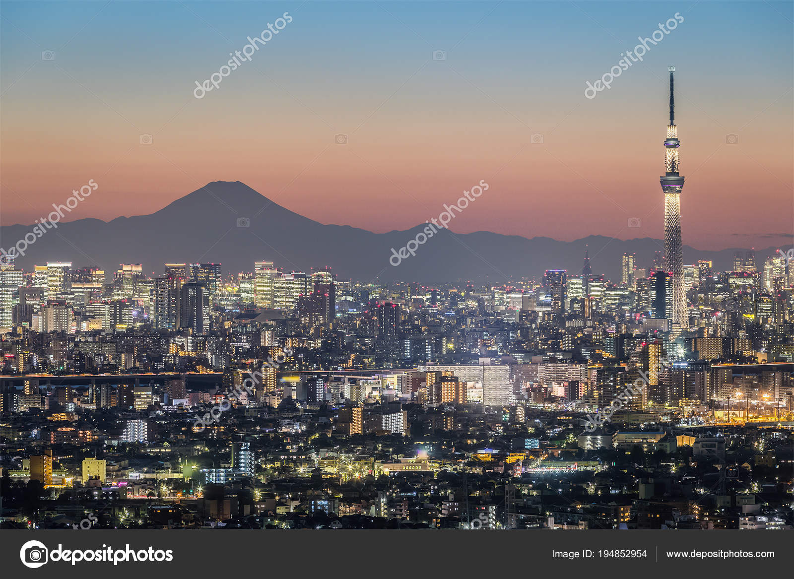 Tokyo Night Tokyo Skyline At Dusk With Mt Fuji Showing On The