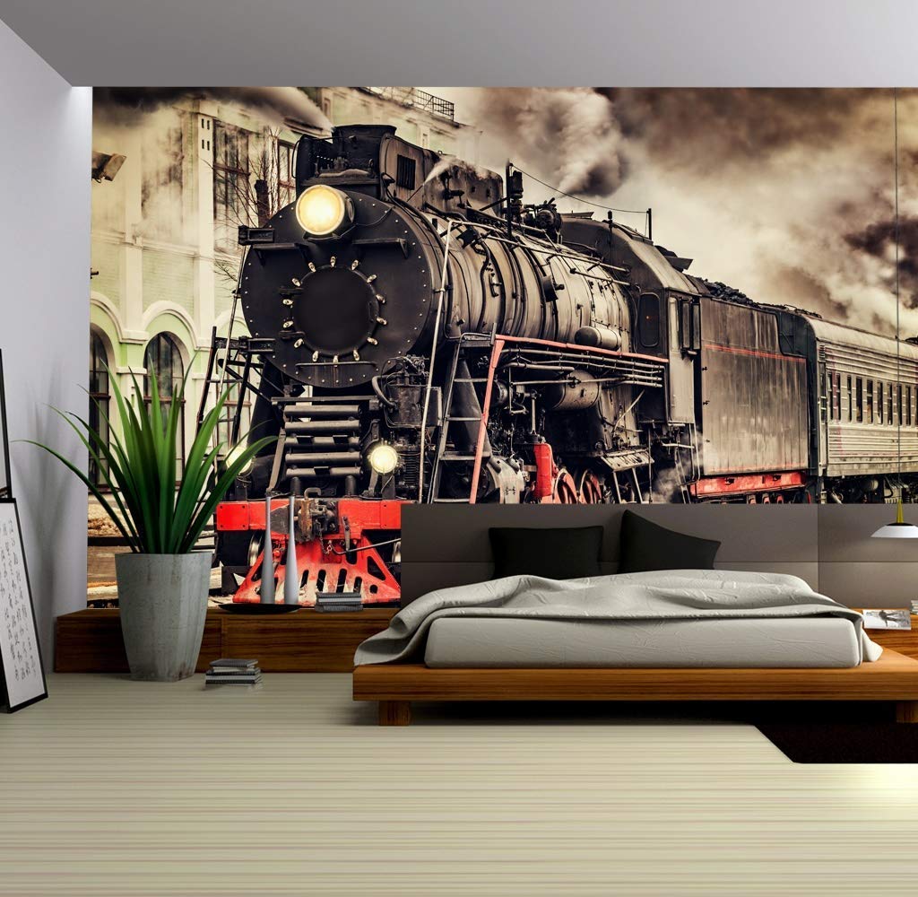 Amazon Com Murwall Vintage Wallpaper Train Wagon Wall Mural Retro