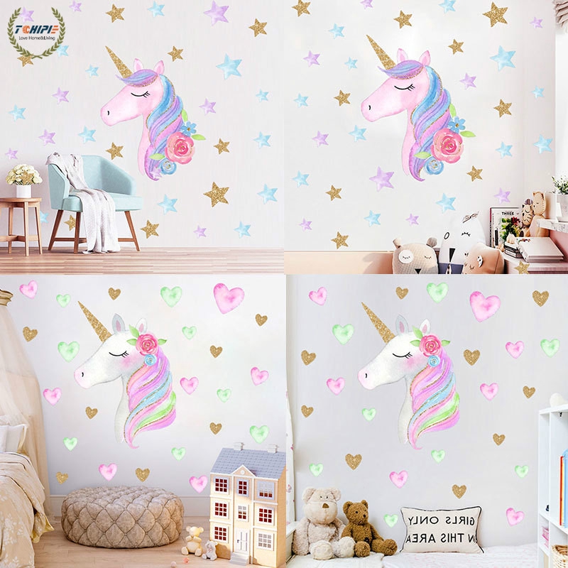 Cartoon Cute Unicorns Star Heart Wall Stickers Wallpaper Diy Vinyl