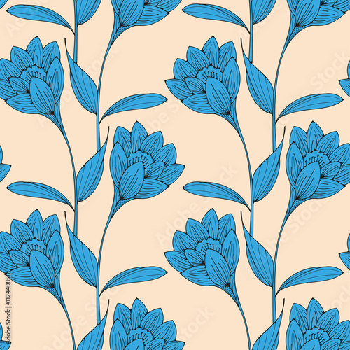 Vintage Vector Seamless Pattern With Hand Drawn Flowers Retro